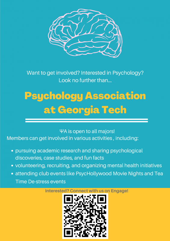 All GT students are eligible to join Psychology Association (ΨA). See details below