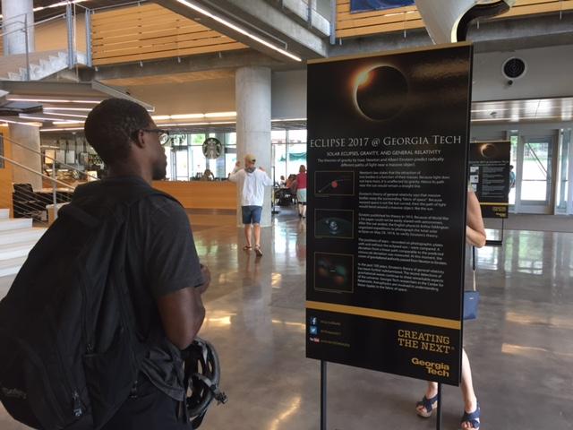 Meant to whet the Georgia Tech community’s curiosity about the rare solar spectacle on the first day of the 2017 Fall semester, the exhibit looks at past eclipses from science and pop culture perspectives. It displays the path of totality of the Aug. 21, 2017, solar sensation, which will be visible across the U.S. from coast to coast.
