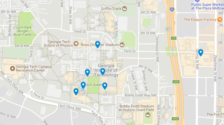 - On Tech Walkway in front of the Starbucks side of Clough Commons and Skiles Building