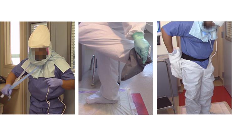 The health care workers participated in simulations in which their protective equipment was contaminated with harmless viruses that served as surrogates for Ebola and for hardier viruses, similar to Norovirus. The workers were video recorded while removing their protective equipment.