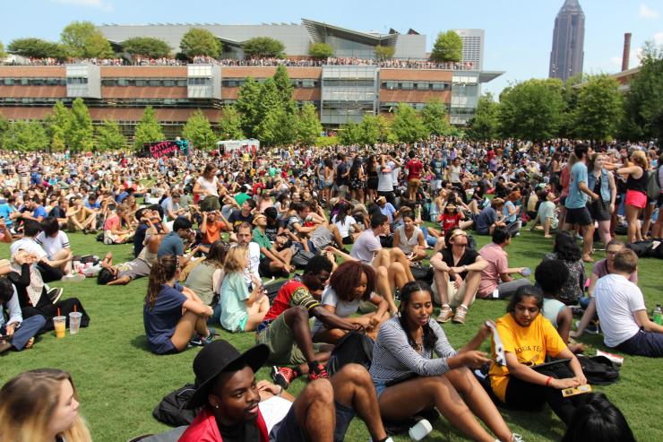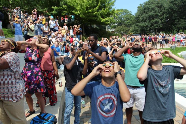 Renay San Miguel: On August 21st, 2017, the first day of classes, thousands of members of the Georgia Tech community descended on Tech Green to watch the moon’s shadow cover 97 percent of the afternoon sun.