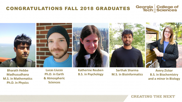 Meet five graduating students from the College of Sciences. Headed in various directions—in the U.S. or overseas—each feels well-prepared for the next step in their professional life because of their Georgia Tech education. Georgia Tech helped them achieve their goals and join a larger community, one that values friendship and collaboration, as well as scholarship.