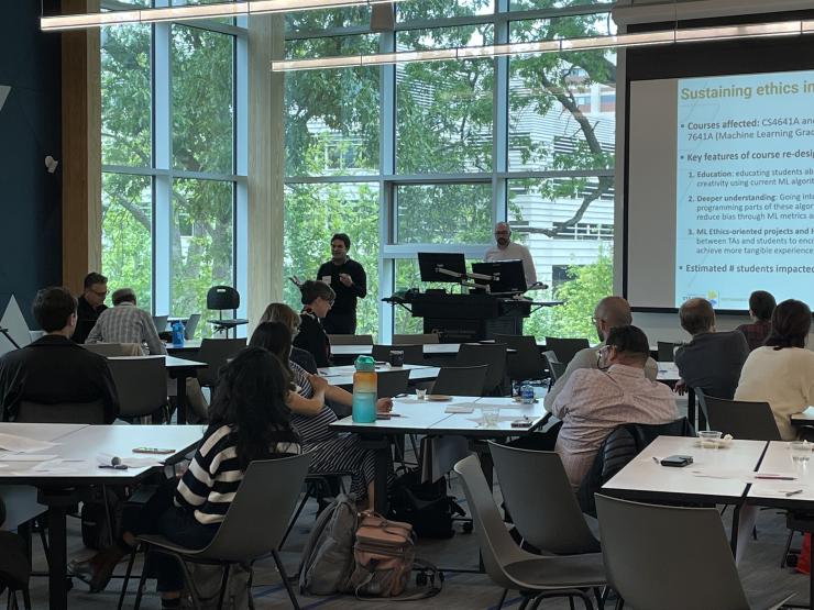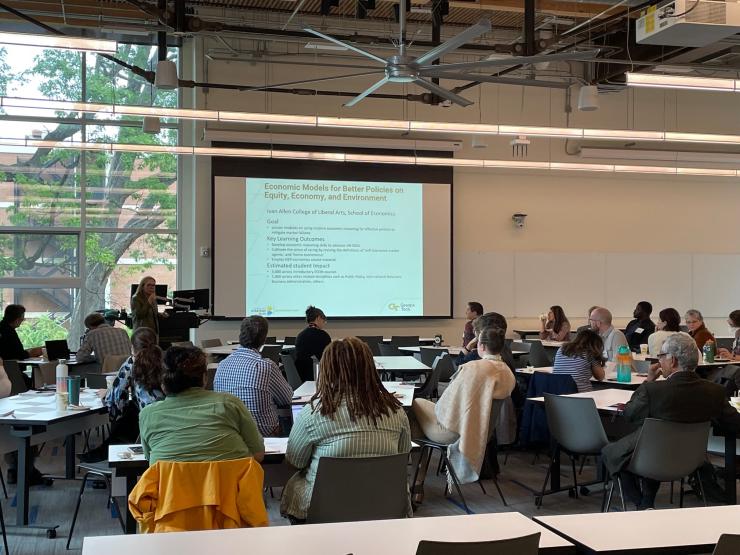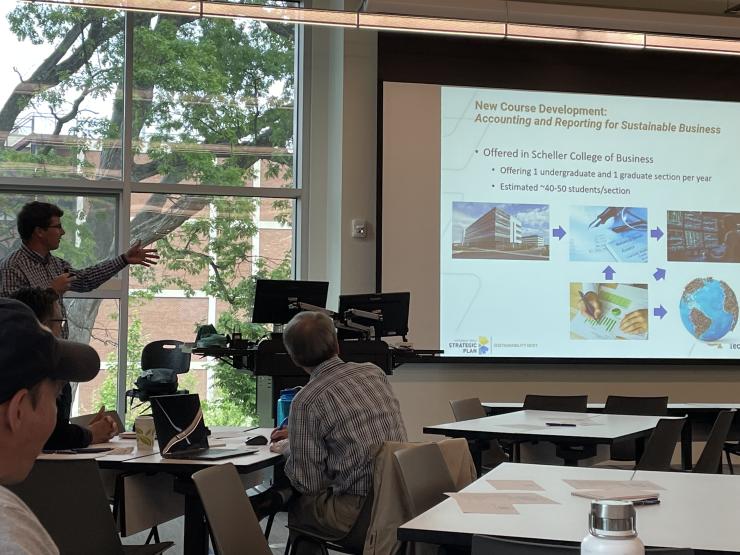 The Jamboree featured lightning presentations from the award winners, as well as presentations about related initiatives at Georgia Tech to help instructors, students, and staff better understand the landscape of sustainability education innovation on campus. Instructors engaged in course design or re-design through the awards will have opportunities to collaborate with and learn from their peers through a Community of Practice on Transformative Teaching with the SDGs and a SoTL (Scholarship of Teaching and Learning) research group. Many began identifying potential collaborators at the event, as they heard from other award winners. “The afternoon of lightning presentations by fellow faculty was exhilarating,” Sabir Khan, Associate Professor, Schools of Industrial Design and Architecture, shared. “I came away impressed and excited at the range of projects and have already invited a few instructors to join my class in the fall to discuss their approaches to tackling the UN SDGs."